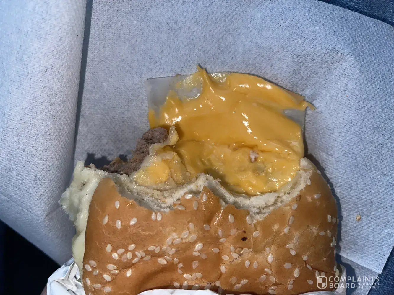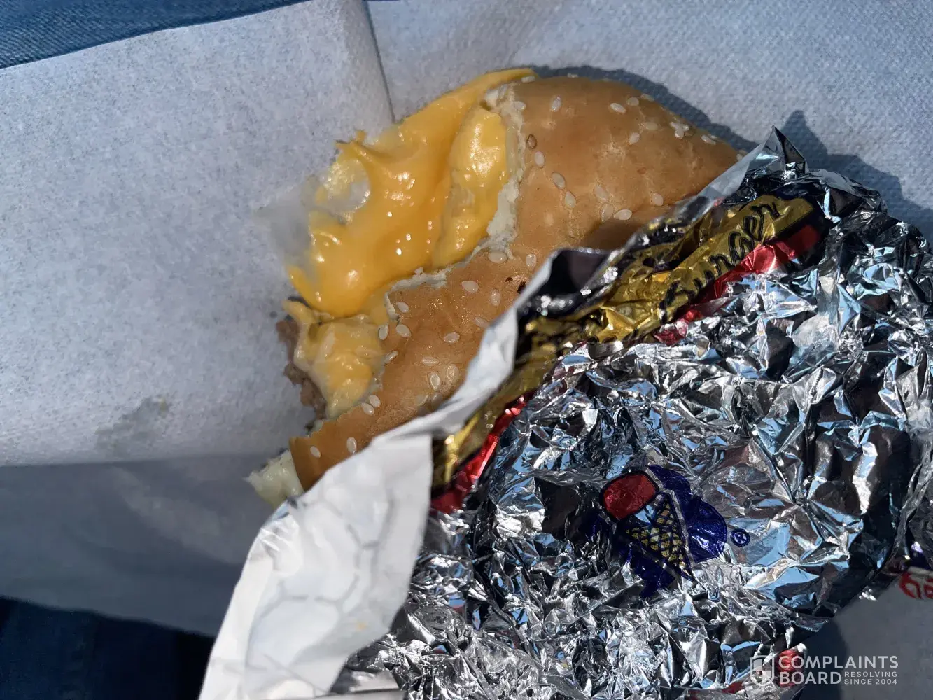 Order my burger which is a number 4 like I always order for my lunch only get a 30 minute lunch and after I got my food and got back to work I had about 10 minutes to eat my food and my second bite into my hamburger there was a piece of plastic in my burger! Like I said I get this all the time and this may not happen every day but this is not okay and it definitely need to be resolved is some sort of way!