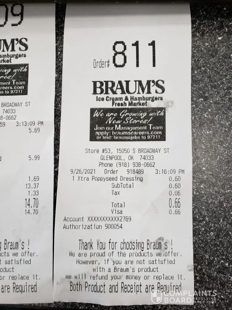 Braum's Incorrect order