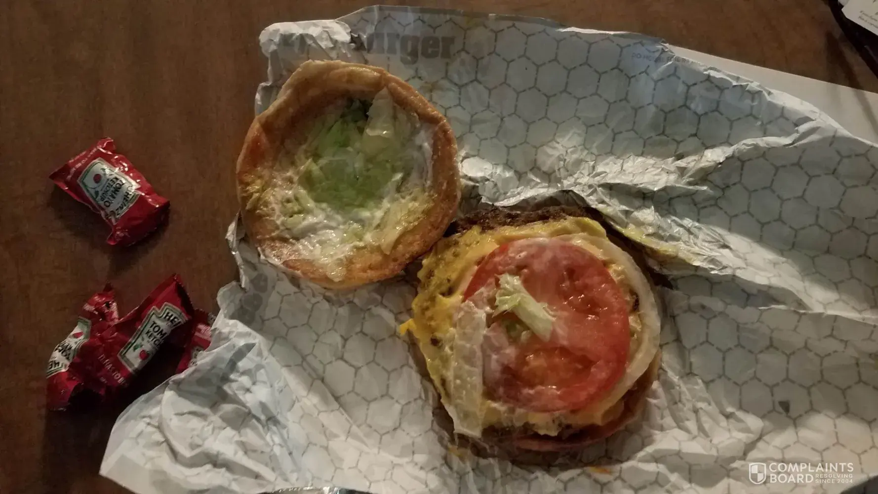 Just got home from Braums in Choctaw, Ok. With our three Deluxe â…™ lb. Hamburger & Cheeseburger, Just before i eat mine I open it up to add a speck of salt to it. there was only one slice of tomato one tiny pickle and a speck of lettuce. Ours didnt look like the one in the Ad. Come on you guys You can do better than that.