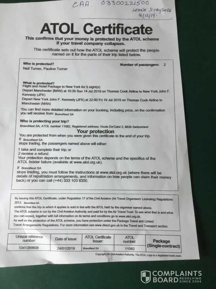 The last 5 months my insurance paid up minus the flight charges I then sent my atol certificate to the caa