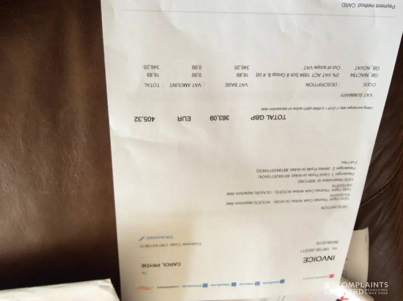 I am absolutely appalled with the lack of confirmation, customer service, expensive flight and the inadvertent way I was taken to your site. Resulting in me overpaying by twice what I could have got the flight for at a local airport. I paid by paypal so took these issues to dispute. The result today is that paypal has denied my claim based on you saying you have 'delivered' the goods. I stress I have had no confirmation email from you. I would appreciate a refund for the stress and upset this has caused me and the lateness of making the necessary remaining holiday arrangements.