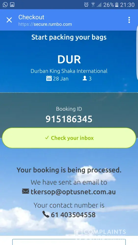 My flight tickets were payed for but I never received my tickets but they took my money all right RUDE and NASTY not helpful at all I went to the Fodor of biking my flight through them thinking that it would be a good idea and safe but no way is it at all rob you of your money that is all I have rang them also they are no help what so ever very rude just want your money give you no tickets for it o have them my address and mobile number and all DISGRACE