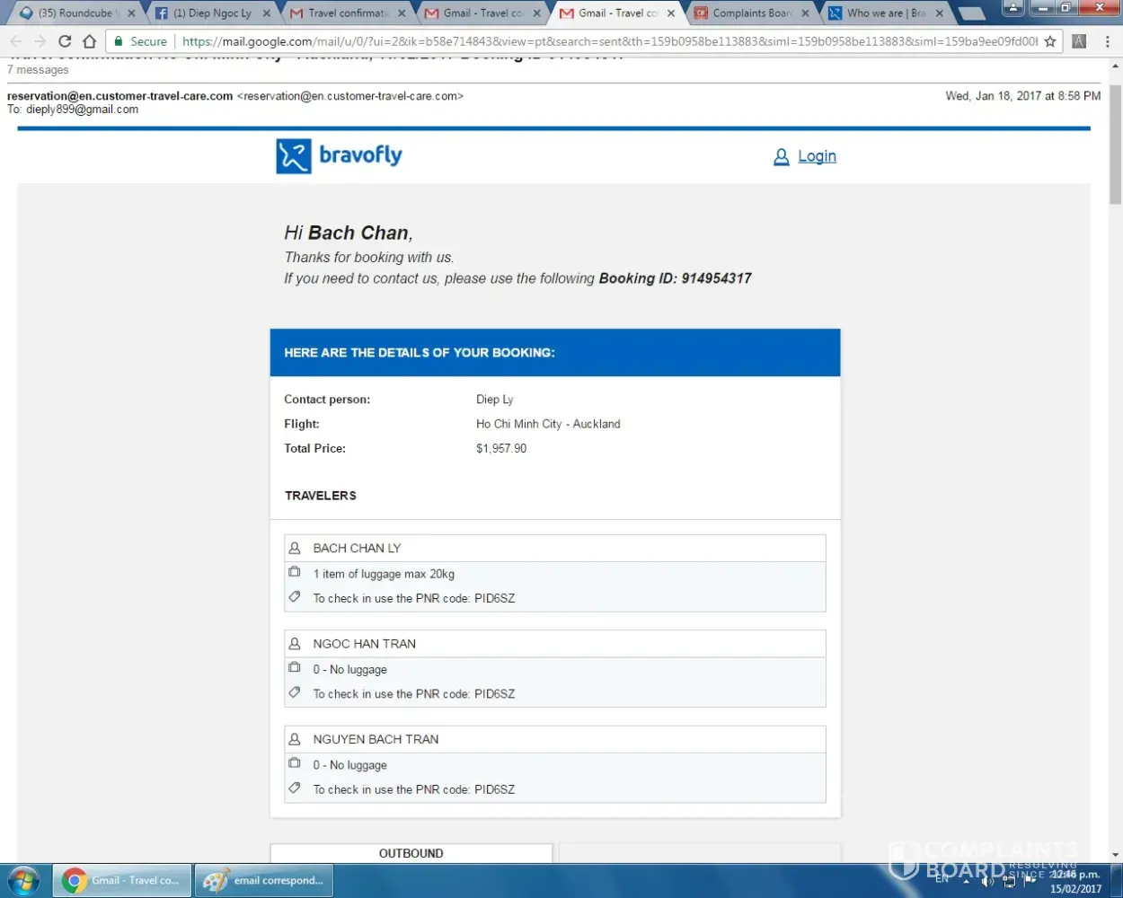 I have booked a round-ticket to Vietnam on 14 April 2017 since last October 2016. I planned for vacation in advanced for spring break 2017 so I booked the ticket soon for a cheap one. Unfortunately, my plan changed inexpertly last month so I tried to contact Customer service at email address Customer Service