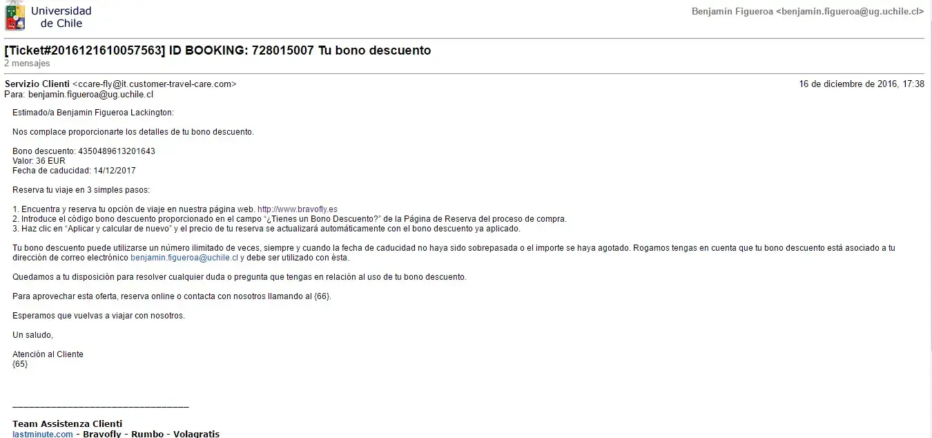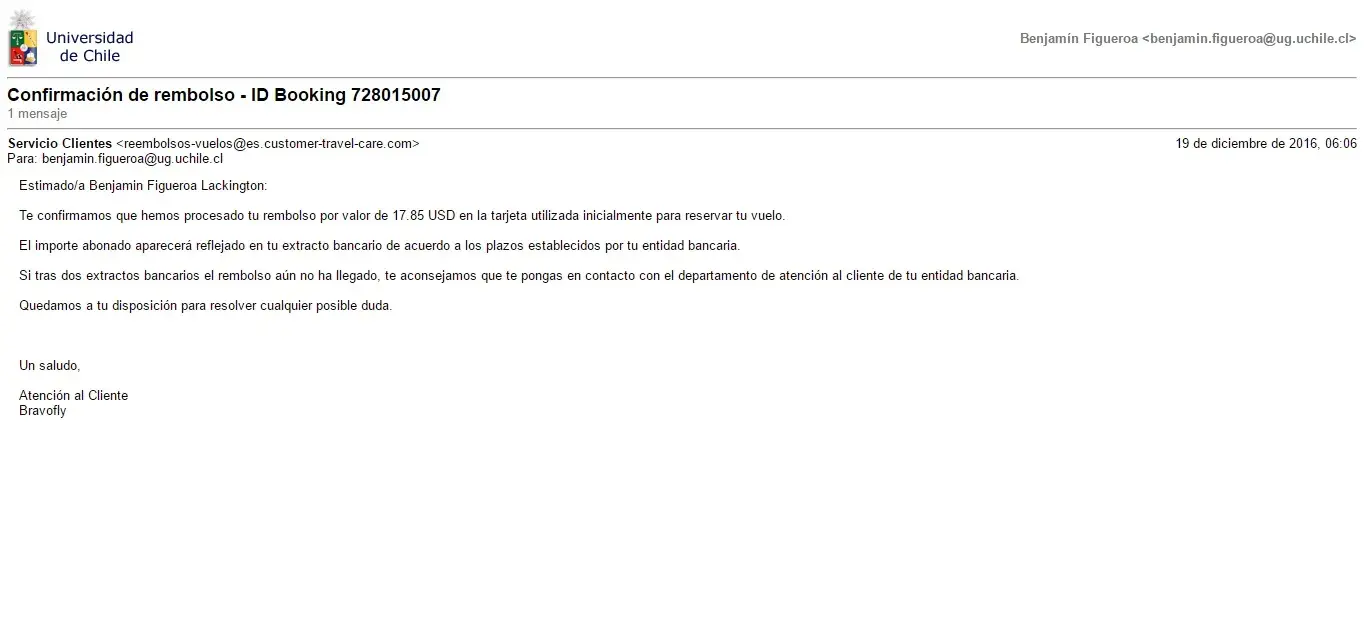 P.S. My ID booking is [protected], my PNR codes are GSSYYB and UEQGFZ, and my e-mail is benjamin.[protected]@ug.uchile.cl