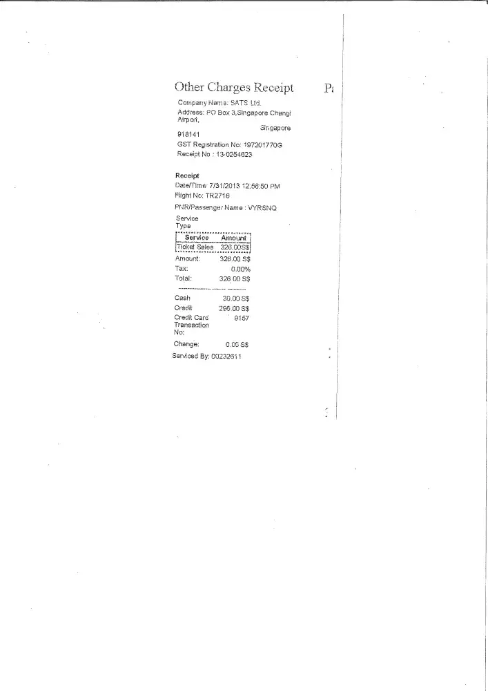 The amount was $296.00 Singapore dollars which appears in the statement as $259.84 Aus dollars.