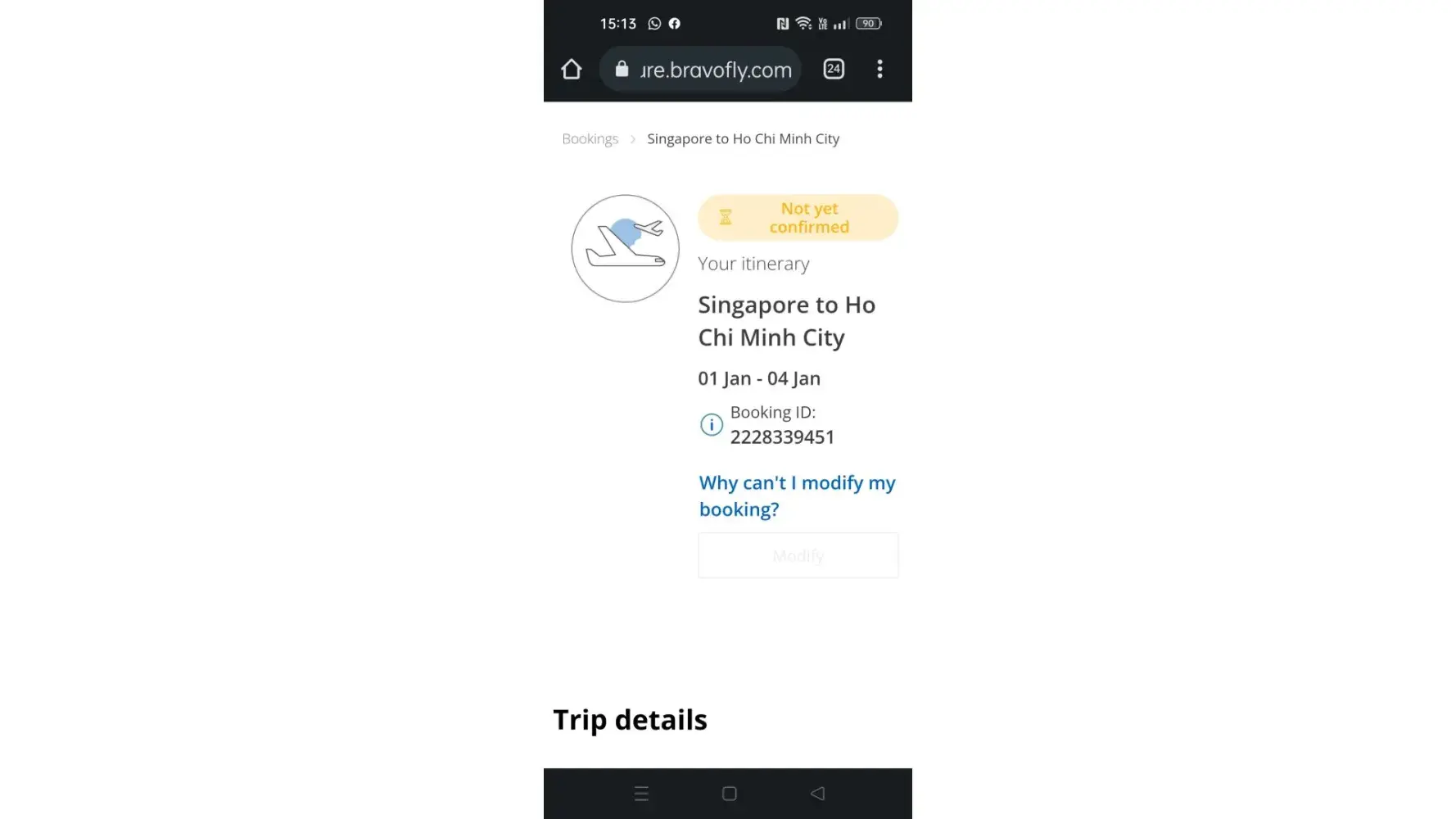 Have booked flight ticket of four thru Bravofly to Ho Chin Ming city on the 1st to 4th January 2023. Till today no updates from them on the confirmation of the flight. We are still waiting for the confirmation flight email. Wonder what took them so long to confirm the flight as payment has been done.
