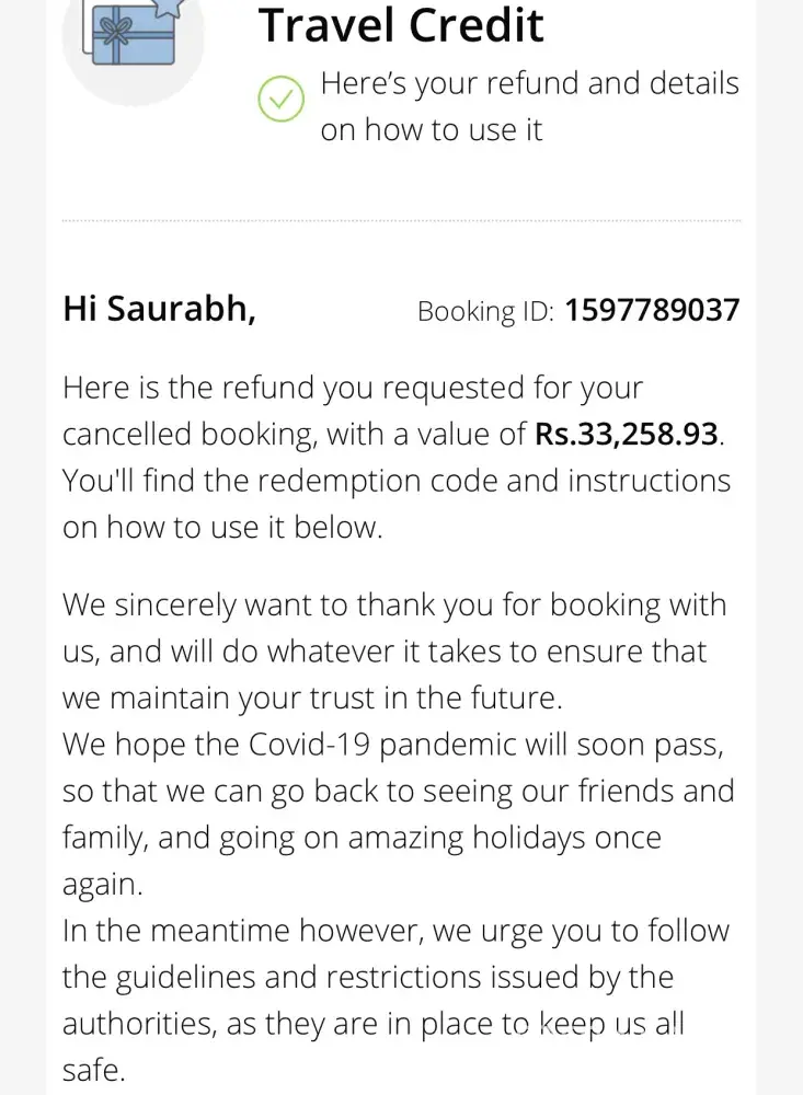 My supposed travel to Manchester was on 28/4/20 - 10/5/20. Unfortunately, due to the pandemic we could not proceed with the holiday and was offered to take up the travel credit - in hopes that we can use them to travel again. I've been trying to find ways to reach them but all they asked is to refer to my account page for the status. I want to know how long more do they need to complete my refund?
