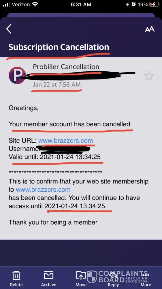 I had signed up for a two day trial on Brazzers three days ago. On the second day I tried my best to end that trial, however, there was no way to do it. Today I just opened my bank account find that OI had been charged $39.99 from a site called Probiller. I have been contacting everyone and do not know why this is happening. I would like a refund immediately because I expressly do not want a membership but there was no way to get out of it.
