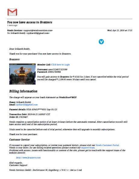 3. call them up & provide details like email, credit card (ONLY 1ST 6 AND LAST 4 NO.S), name & user id for Brazzers.