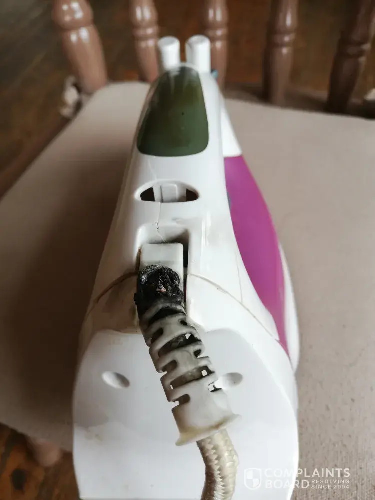 I bought a Breville Iron 5 years ago. I had no problems with it until today when it went on fire as I was ironing. I sustained a burn to my wrist and the iron is burnt out. I was very shaken by this experience and am lucky that I wasn't badly injured. I am attaching photographs of my wrist and the iron showing the burns and where the iron burnt out. I would like to know where I take this matter from here as I would hope that this would not happen to others.