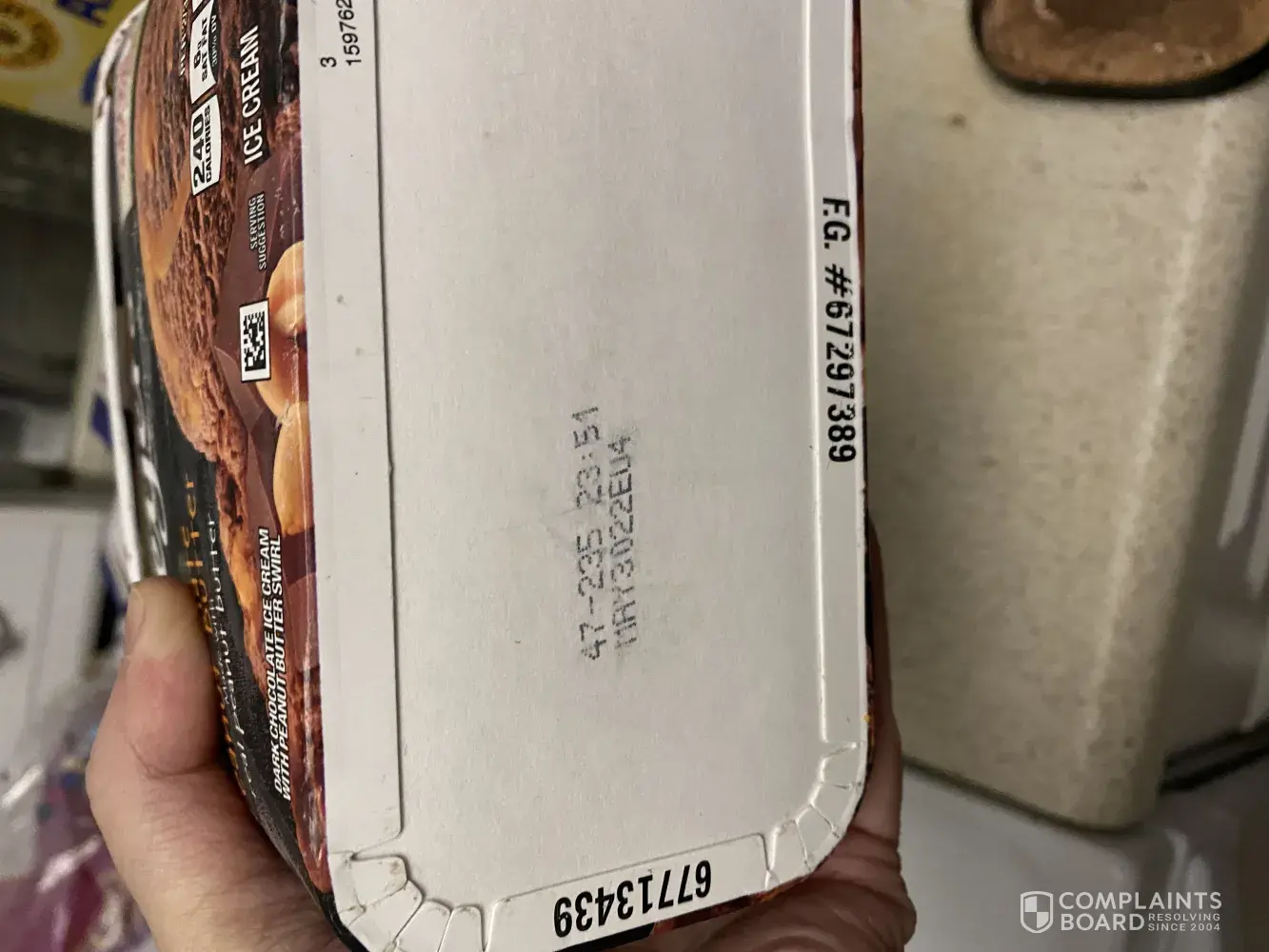 I still have the half gallon of ice cream for your inspection and would like a replacement from another batch of the ice cream.
