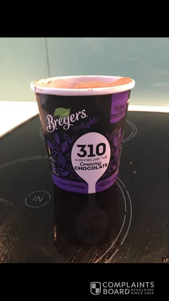 I would like to bring to your attention our disappointment following the purchase today of breyers ice cream fromour local morrisons supermarket in huddersfield, england.