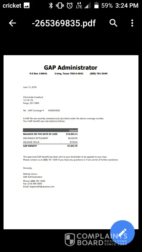 Read full complaint and 1 commentgap coverage