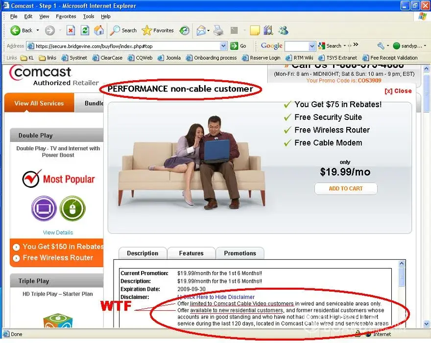 Comcast guys are helpless and they have to bear all the customer's ire because of these [censored] like braodbandnational/bridgevine and comcastoffers.com...ultimately comcast folks will try to get a cheap rate for you (as much as possible without swindling you) and thats what you'll end up with...i havent even touched the rebate part yet coz its been plentifully covered by other folks who got swindled...this is exactly the kind of "fine-print" marketing that the government is targetting to get rid of...hope it works!
