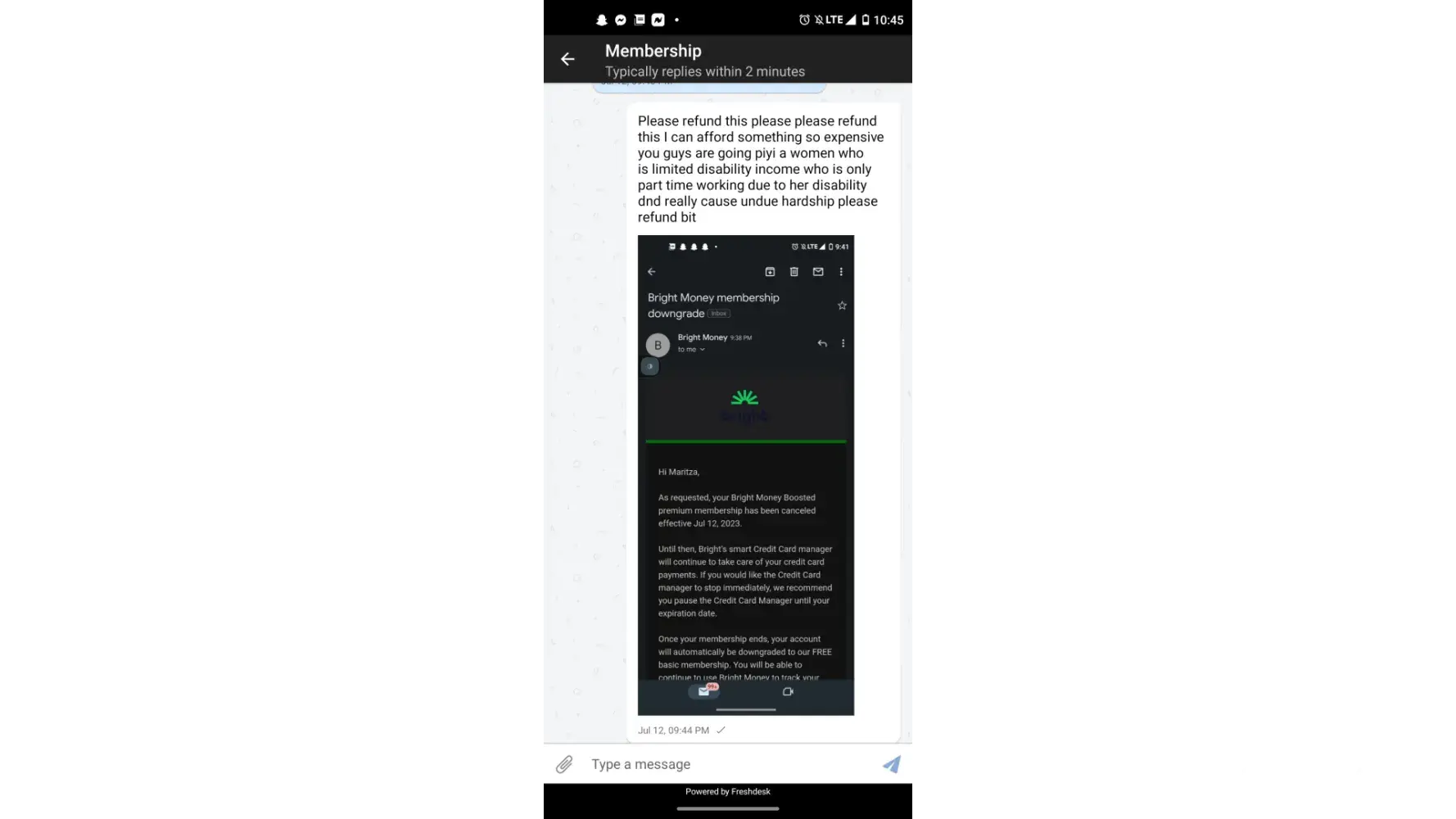 Please refund all the money you have taken out of my account and cancel my subscription that I never asked for. I have emailed bright money several times and no one has notified or has gotten back in contact with me.on 6/30/2023 $99.00 was taken out as a membership fee on 07/03/23 another dollar was taken out on 07/18/23 a total of $1.20 was taken out and as of today 07/20/23 1.00 was taken out spoke to the aka their bot because I can’t get hold of a live agent and said I would have some one to contact me in 48 hours…