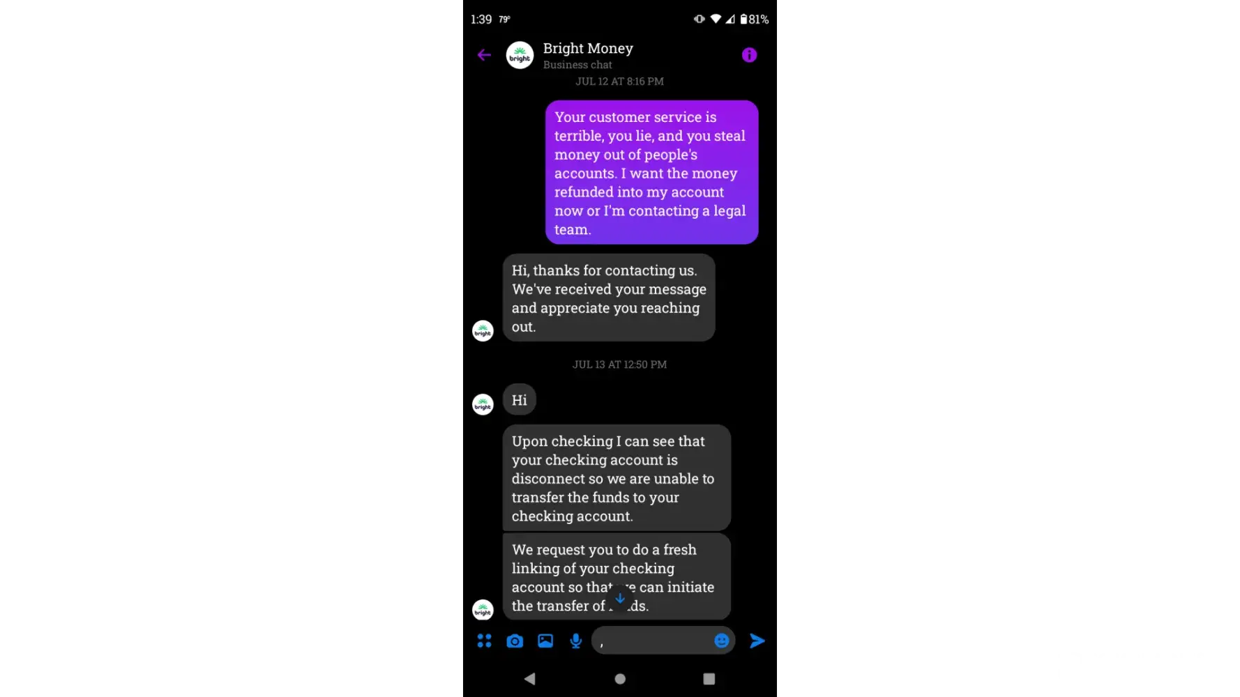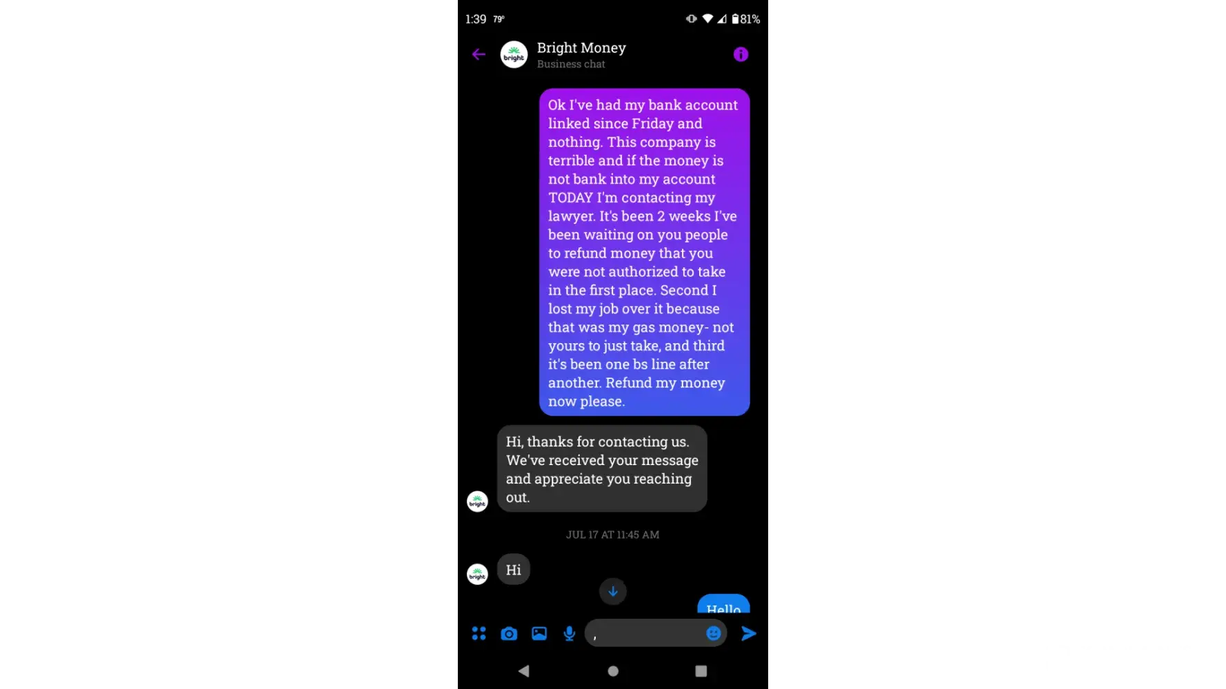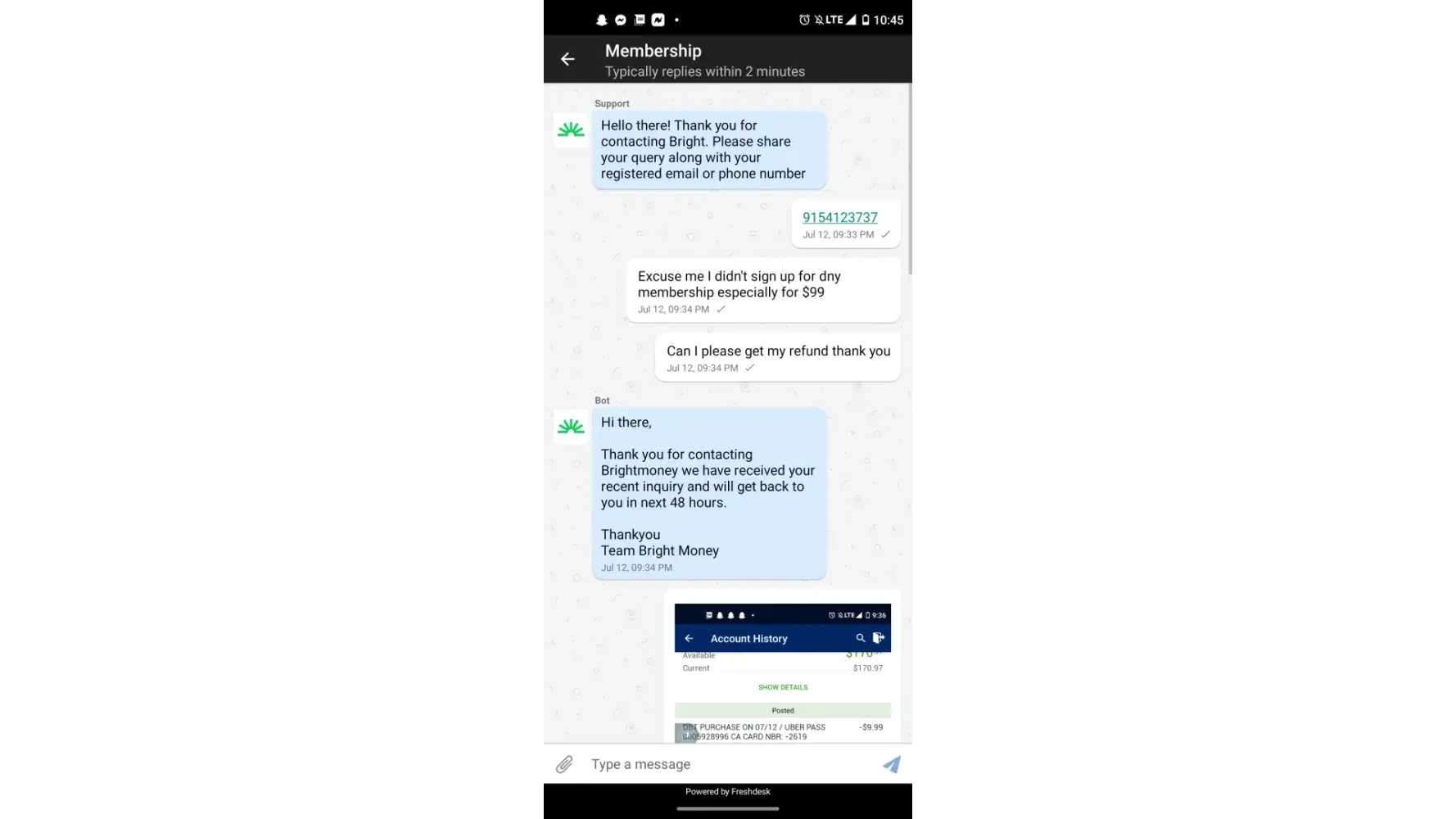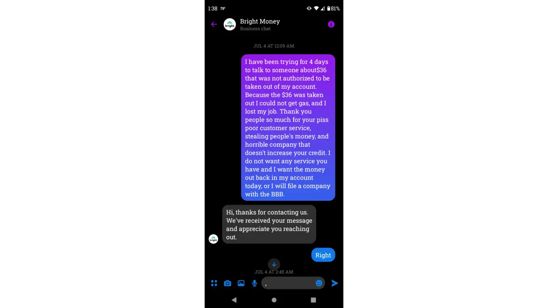 So I emailed customer support on 7/26 and was advised someone would follow up with me in 2-3 days. No one ever did. I then sent another email on 7/31 and got no response. Another batch of small withdrawals came out from Bright. So I attempted to call again and got the same message I got the time before and I sent another email on 8/3.