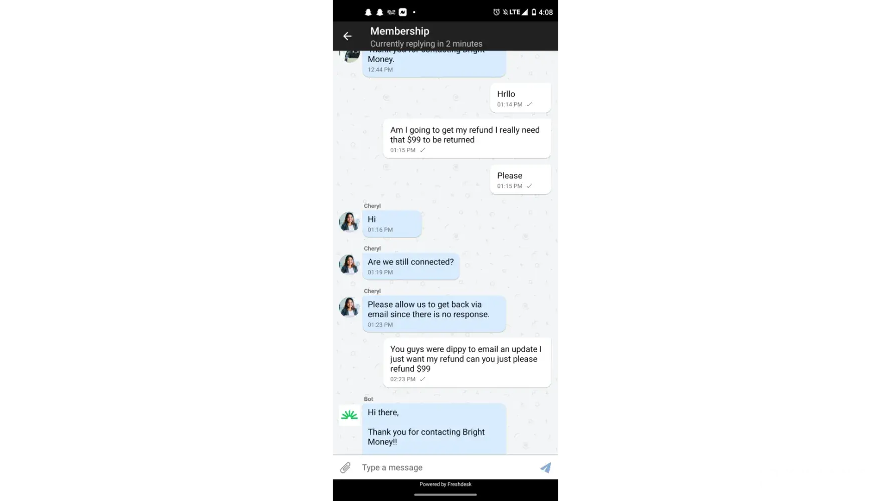 This has got to be the worst customer service I have ever encountered and I'm going to dispute all charges with my bank and block all future attempts to debit my account from Bright and then file a complaint with the BBB because this company is acting fraudulently and refuses to assist people and provides false statements such as when someone will follow-up with them, which is never.