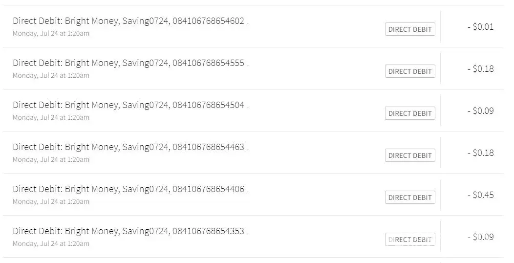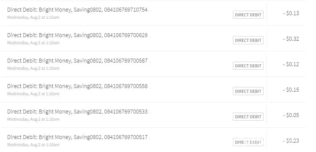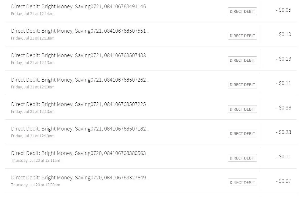 I began having withdrawals from my checking account from Bright Money on 7/19. The withdrawals were in batches of six debits all totaling $1.00. In total, I have had 46 debits in my checking account from Bright that I did not authorize. There were two 9.99 debits and a one-time 2.76 debit. The withdrawals seemed to come in the middle of the night as well. I attempted to call Bright 5 times in the course of a week at all hours of the day to see if someone would answer, and I only would get a recording advising me all reps were busy and to email customer support.