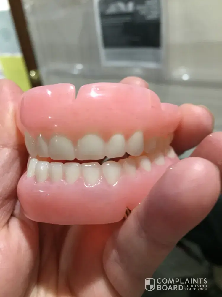 I was delivered a set of dentures that makes me look like I have gum disease and when I complained I was told that they are normal I have been back two or three times and complain they said they would initiate a refund I sent them pictures no one is ever responded and once they got my money they said they can no longer help me this place is full of monkey...