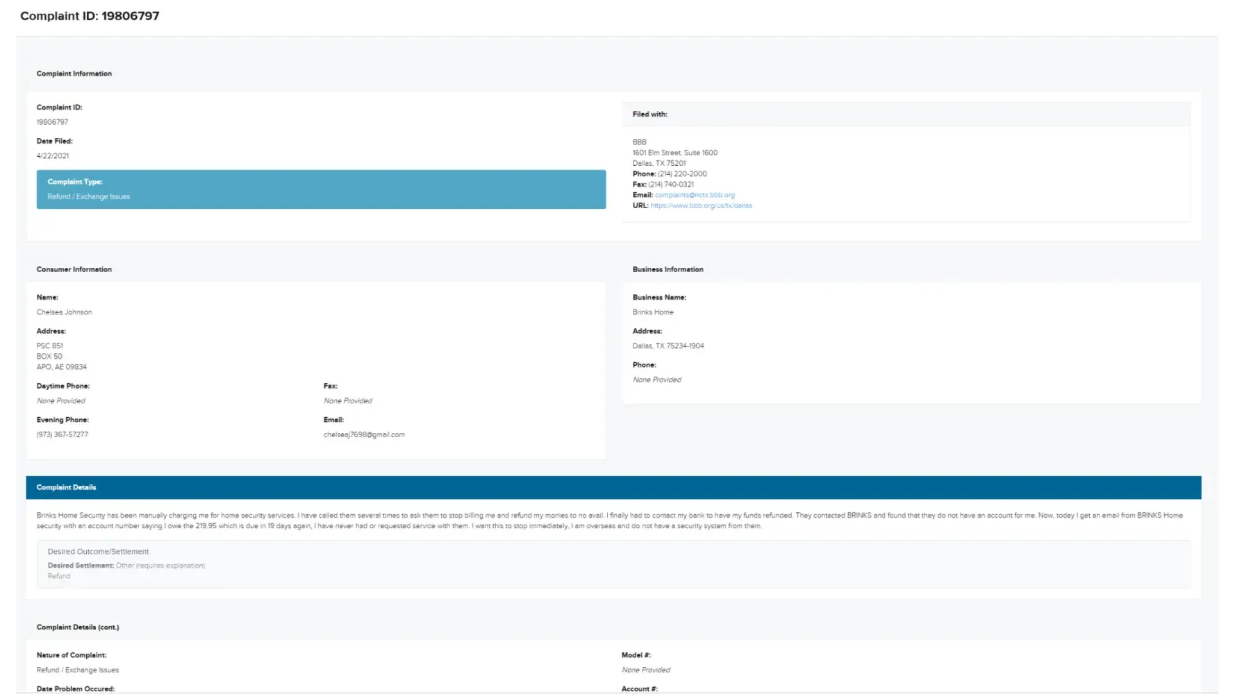 Desired outcome: Take the collection off my credit! I did not request your services. I have attached a copy of the original BBB report from 2021.