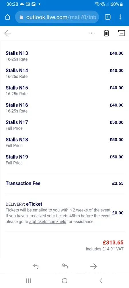 I went to the Bristol hippodrome tonight 11/01/2019 to watch the above production. My son gave me two tickets as a Christmas present we were sat in upper circle j14 j15. My son is 18 years old and is in the RAF training as a medic he is not a stupid boy but unfortunately got conned by purchasing the tickets as a Christmas present from viagogo thinking it was a genuine site for the hippodrome. He paid £108 for two tickets which were worth £15 each. This is a lot of money for him to spend and he gave it as a special present as I am asingle parent nurse . He genuinely thought this was the price for the seats he booked. I didn't realise he had paid so much until I was sat watching the performance it made me sick to my stomach that this could have happened. We have lived in Bristol all our lives and all I feel disgusted that the hippodrome can allow this to happen. I have been many times and purchase through ATG direct I did not realise there were other ways. He has been conned of £78 he is a serving member of the forces. My night was completely ruined, I could not enjoy the Dow knowing we paid more than triple the money for seats where we could hardly see the show.