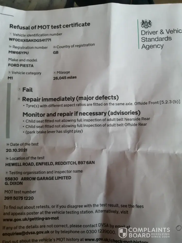 Needless to say the MOT this year has failed and I have been inconvenienced having to go back to the garage to get it fixed.