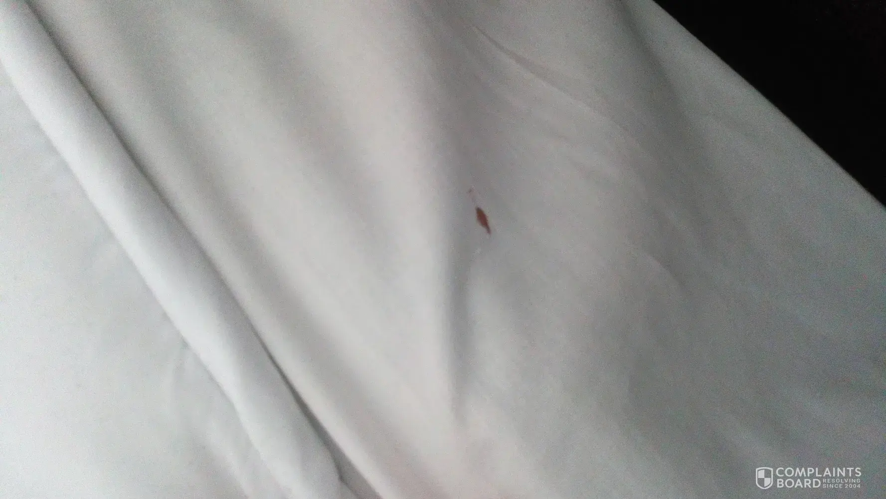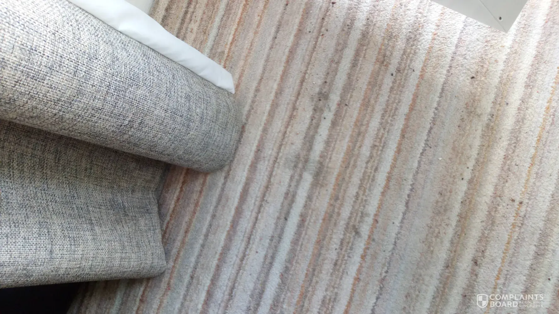 When i entered the room, the first thing i noticed was the terrible stains on the carpet (please see photos attached), the bedding had, which appeared to have blood stains on them, there was no chair, the bed was rock hard, the furniture was tired, worn and broken, the sink in the bathroom was coming away from the basin and had tape wrapped round it, the doors were filthy and hadn't been cleaned, the balcony hadn't been cleaned and tiles in the bathroom was a mishmash of different tiles. The floors and bumps and lumps all over them and the creaking on the floors when you walked about the room was unbelievable !