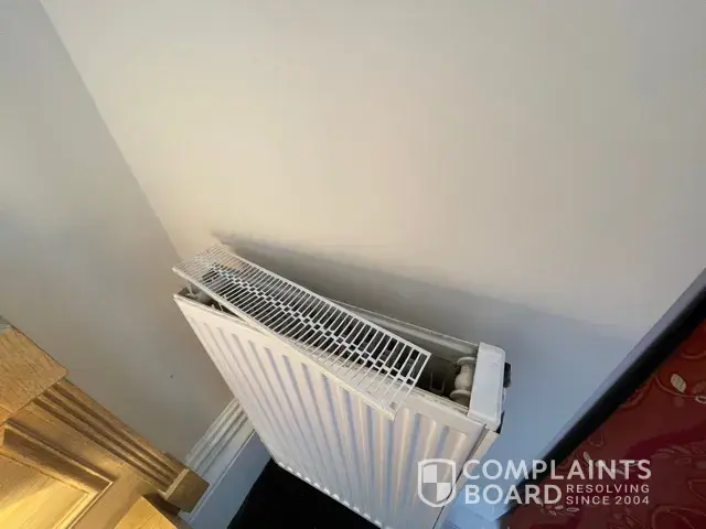 The heated towel rail in the bathroom was hanging off the wall