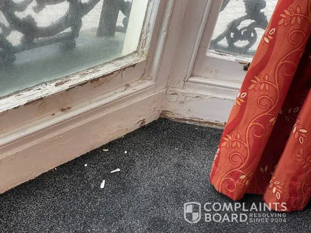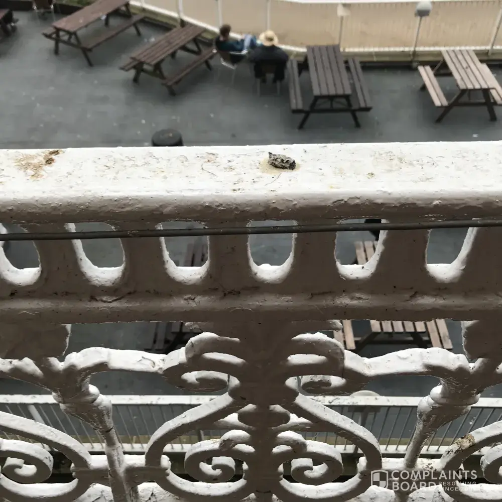 I booked into this hotel after waiting 2hours in a que to find the room I asked for with sea view and varander outside was disgusting and dangerous to walk out on if I or my grandchild fell god only knows what could have happened so I went and told receptionist who told me to go down and see manager in the morning so I did that and kept window closed so glass didn't fall out and we never seen a sea view also shower was mouldy and black varrander was full of poop and cigarette ends all over varander as well I've added photos to show what it was like and their was no notice to say it's ok to use I am seeking some compensation for a holiday for my grandchild before seniors so he could have a nice time which he did not have fun in your hotel we also had problems with lifts as I am disabled and had the children of refugees running and screaming playing in the lifts can you look into this please it's the grand hotel 6th September 2021 thankyou