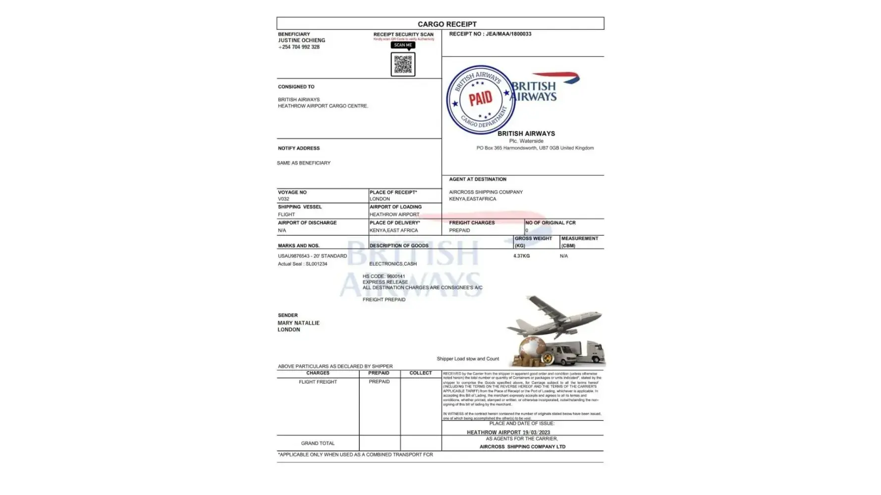 Please can you confirm if this is part of British airways courier service +[protected]