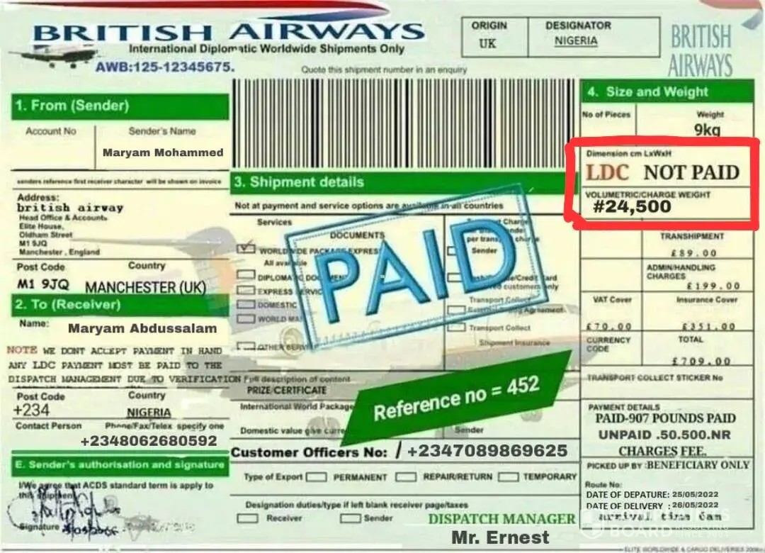 Welcome To British Airway Courier Company Your Parcel Is In A Safe Hands (Call Telephone: +[protected])