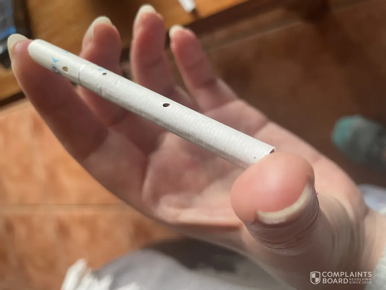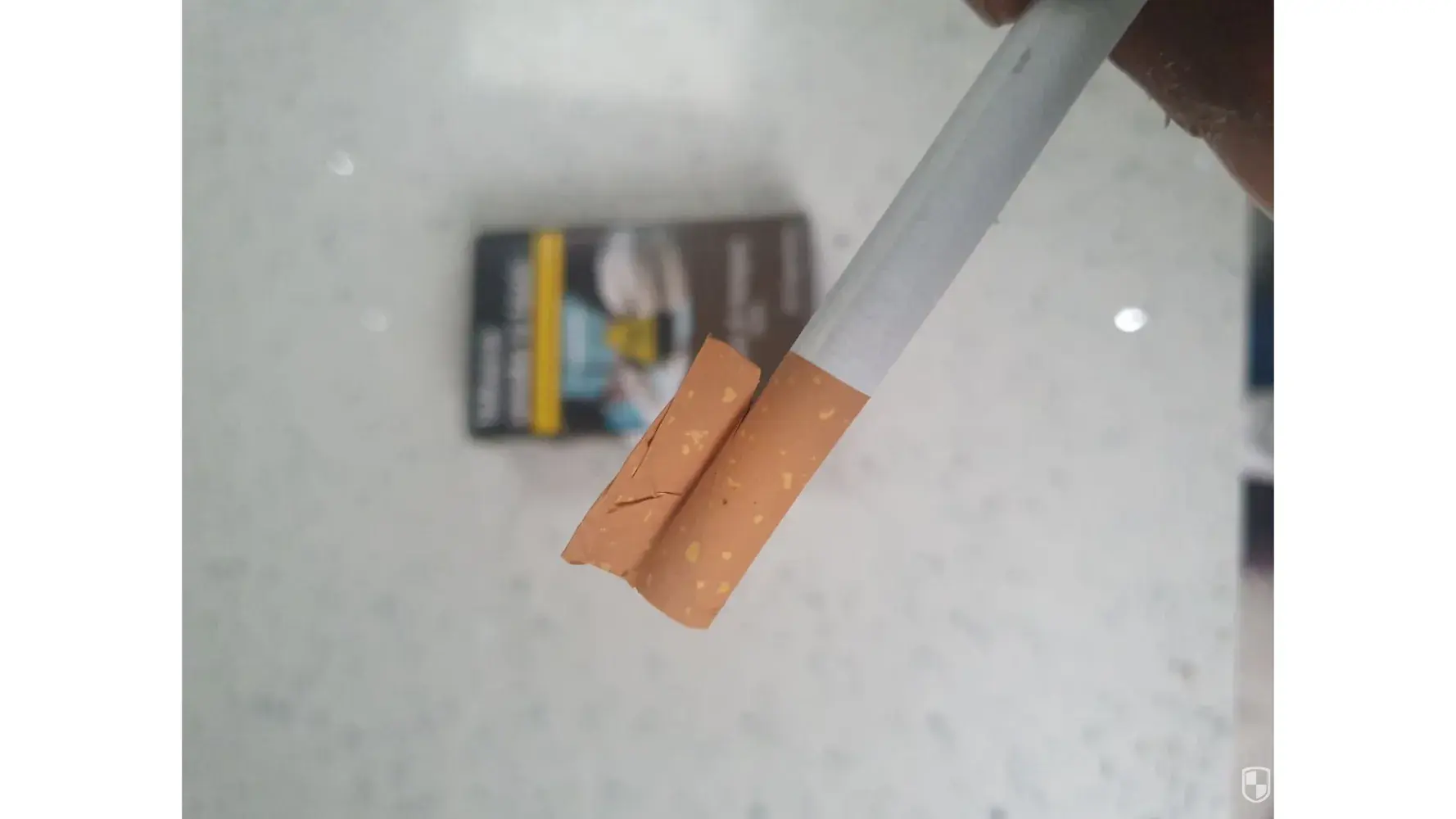 Please see attached photo of a cigarette from a packet bought yesterday 10 May 2021. There have been 3 cigarettes with holes in them.