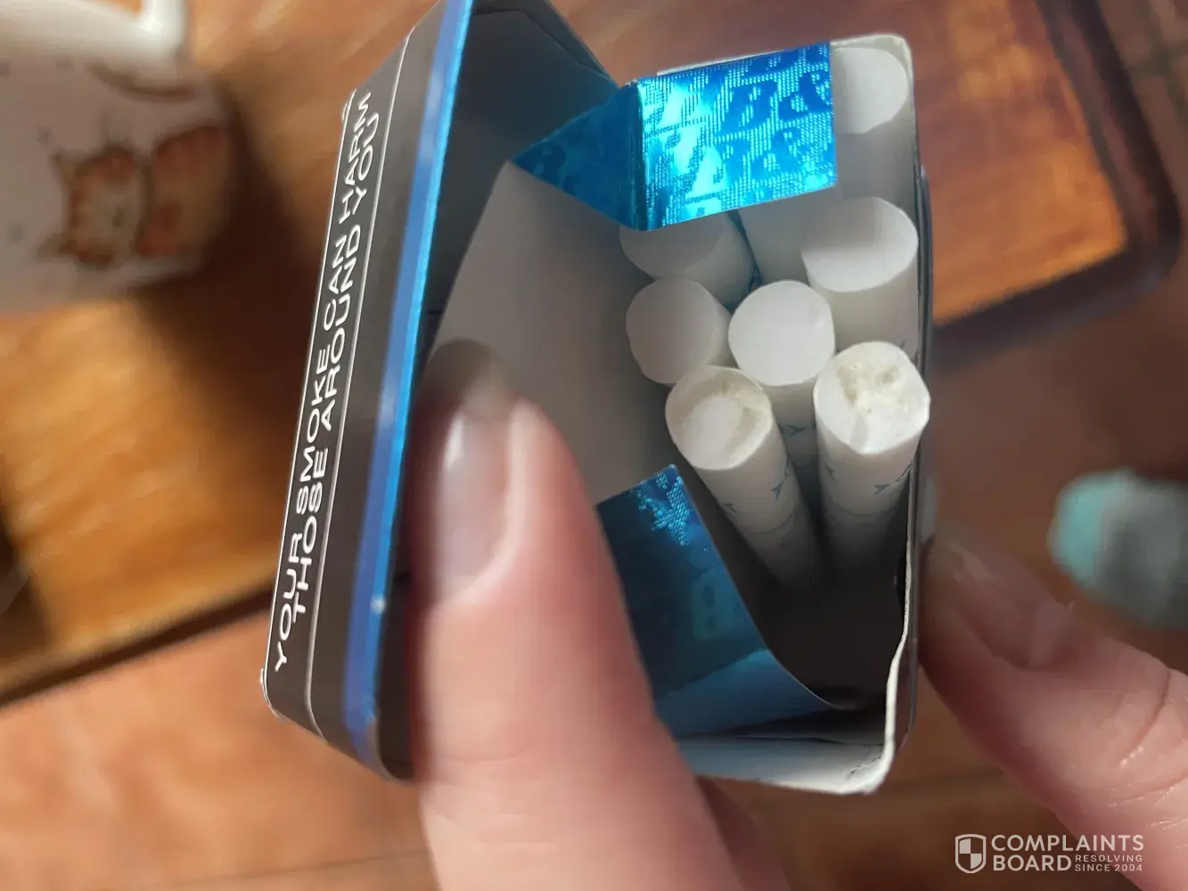 The filter wrapper on the cigarette wasn't correctly places and some of the cigarettes are broken. I've had this issues for a while now and it's starting to get expensive to get new packets due to the loss of some cigarettes. I just want the cigarettes replaced.