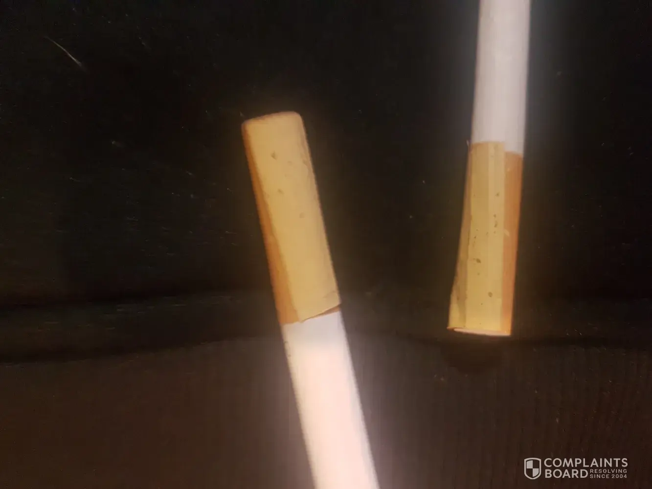 2 cigarettes in the same packet of 40's i noticed the filters were defected. Im not usually one to complain however cigarettes are just getting more costly every year, in saying that I'll also add i am a loyal longtime smoker of your product.