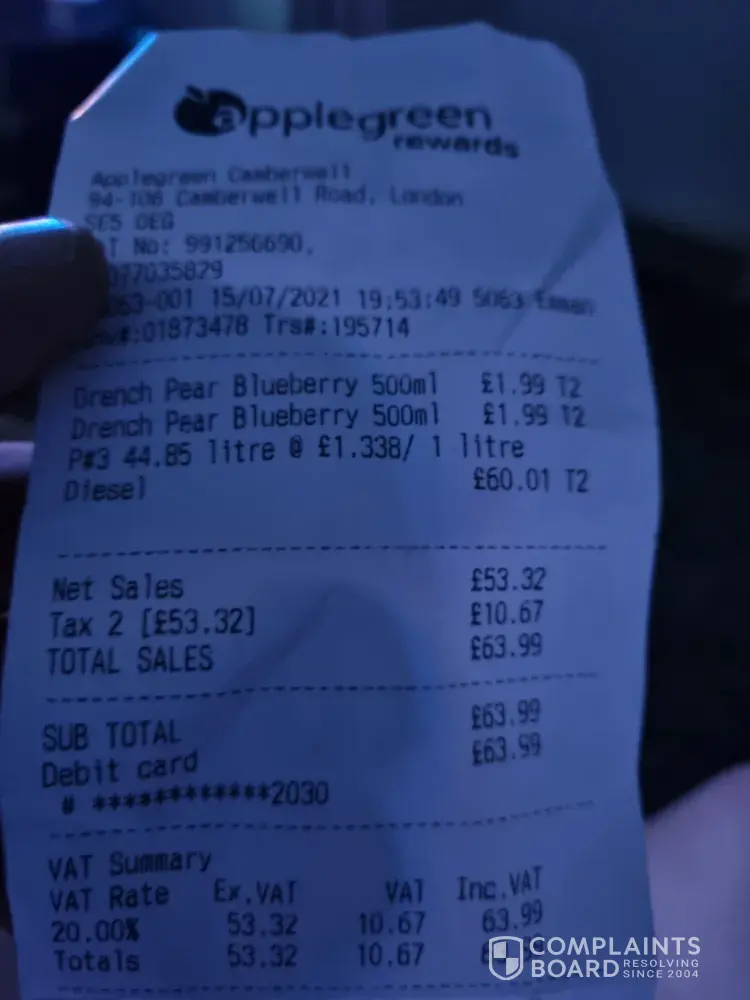 When I get there the car started to smoke even further and couldn’t not start any more, I called a mechanic and he confirmed that the car was poured petrol instead of diesel, I went back to the garage and requested the slip to confirm what was poured in my car and they gave me a slip with a different card number from the card I used to purchase with, I requested to see the footage and they said I can only view the footage with polices presence.