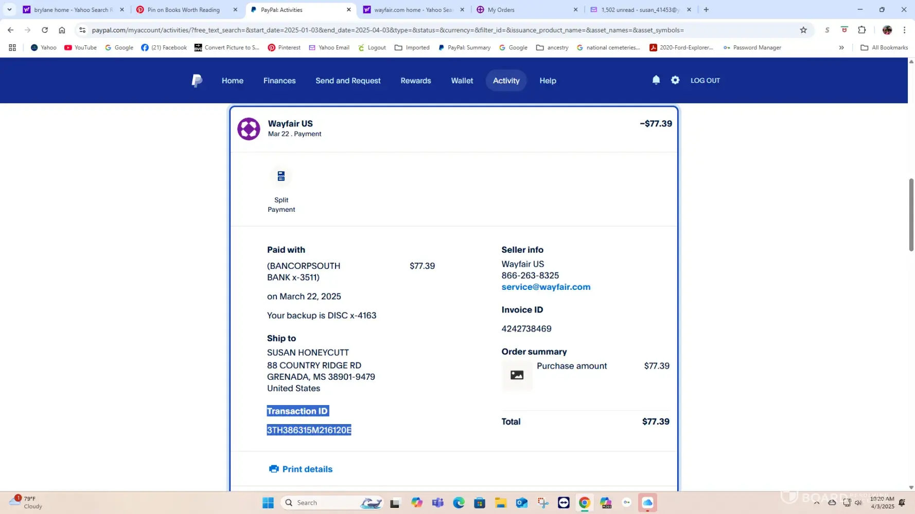 Good Day, on or about 3/14/23 There’s a purchase made for Outdoor Furniture