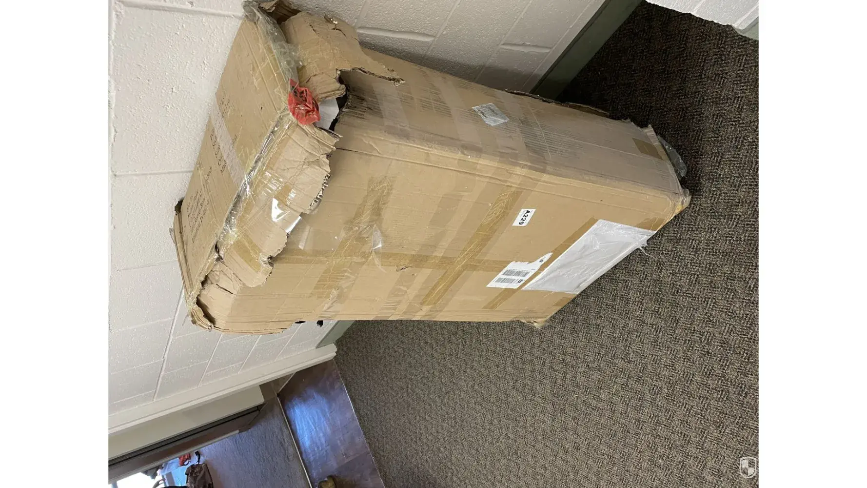 Desired outcome: We/I would appreciate someone to arrange packing this box for return and pick up. The original box is destroyed and arrived so! The packing material is all flying away and disintegrating.