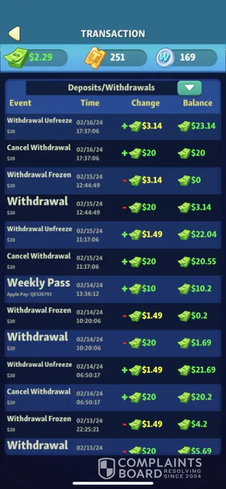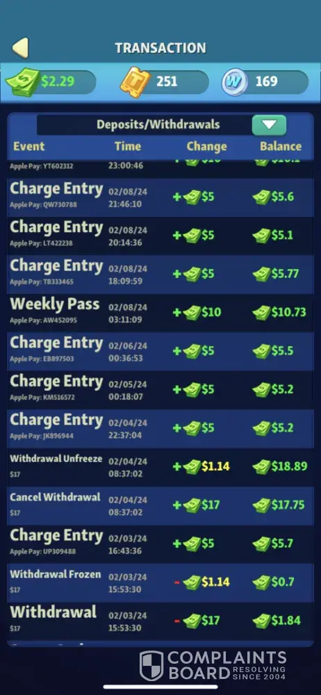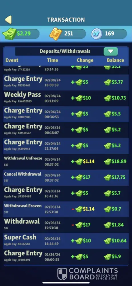 This game is an obvious scam. It’s just like all the other cash games. You pay an amount as an entry fee to each game then perhaps you’ll win a cash prize. However, not only are they not paying you to play as advertised, but their algorithm for when they want you to win or lose couldn’t be more obvious. As an example, I played a 90 second game and at no point did they give me a color that would’ve given me even one pop. The next game cleared in less than 60 seconds. It’s a ridiculous “gameâ€, and I have no idea why apple allows the scams.