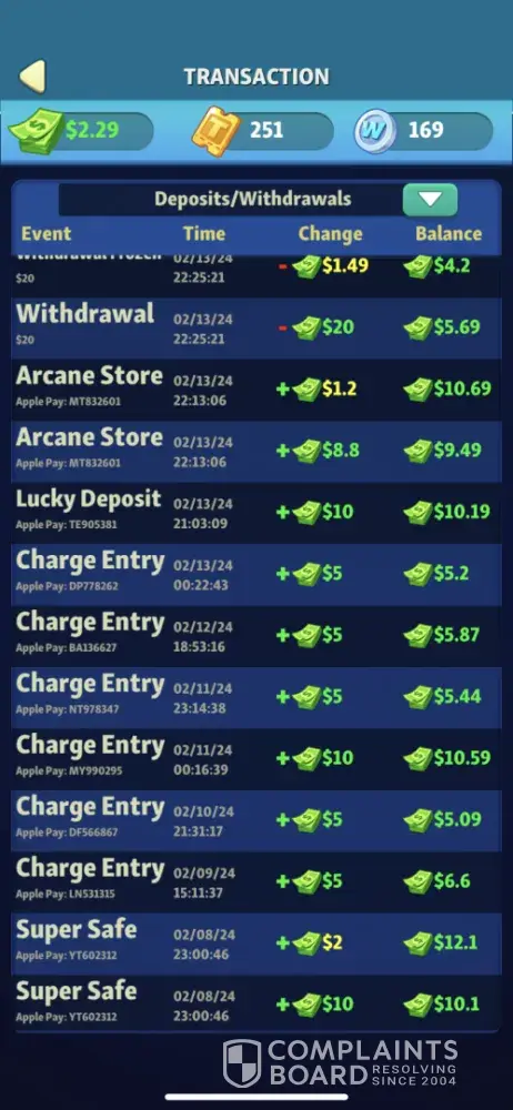 Be weary of this game guys! Says you can withdrawal your winnings immediately and it’s a lie. Going on my third day waiting for the deposit and today when I finally received an email saying my money was deposited it made me go to PayPal which I don’t have. It’s trying to make me create a PayPal account but when I put my email in to complete my account it says my email is “invalid†yet it won’t let me change the “invalid†email because it’s the email I signed up with? Which is my EMAIL! Make it make sense. Also it takes all your money and turns it into bonus cash and it doesn’t let you withdrawal bonus cash. I smell a lawsuit coming soon for false advertisement. I honestly don’t know how it has almost a 5/5 but I’m sure that’s a scam too.