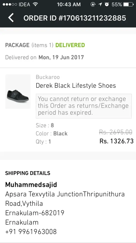 I had booked Buckaroo protilled leather causal shoe, due to miss match the size. as I got through courier, I returned it.