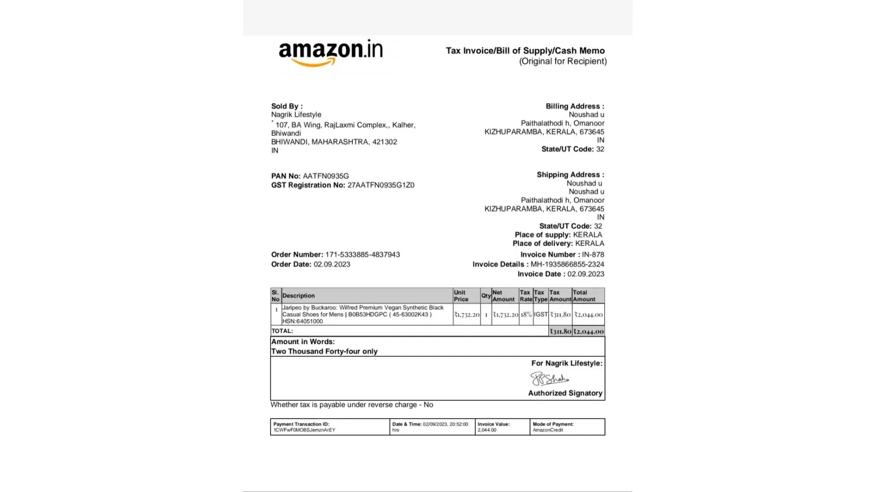 I had purchased a bukaroo shoes from amazon first week of September. Now before i am completing the paymet through my credit card the body of the shoe started to torn