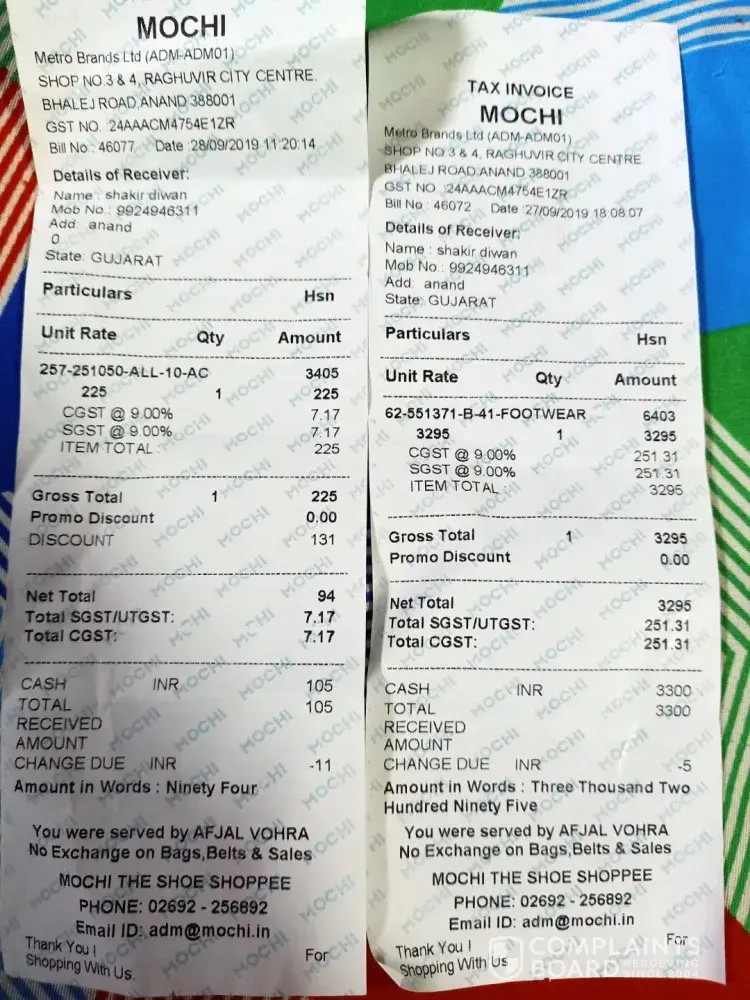 Kindly send me pictures of shoe and bill copy of purchased article…