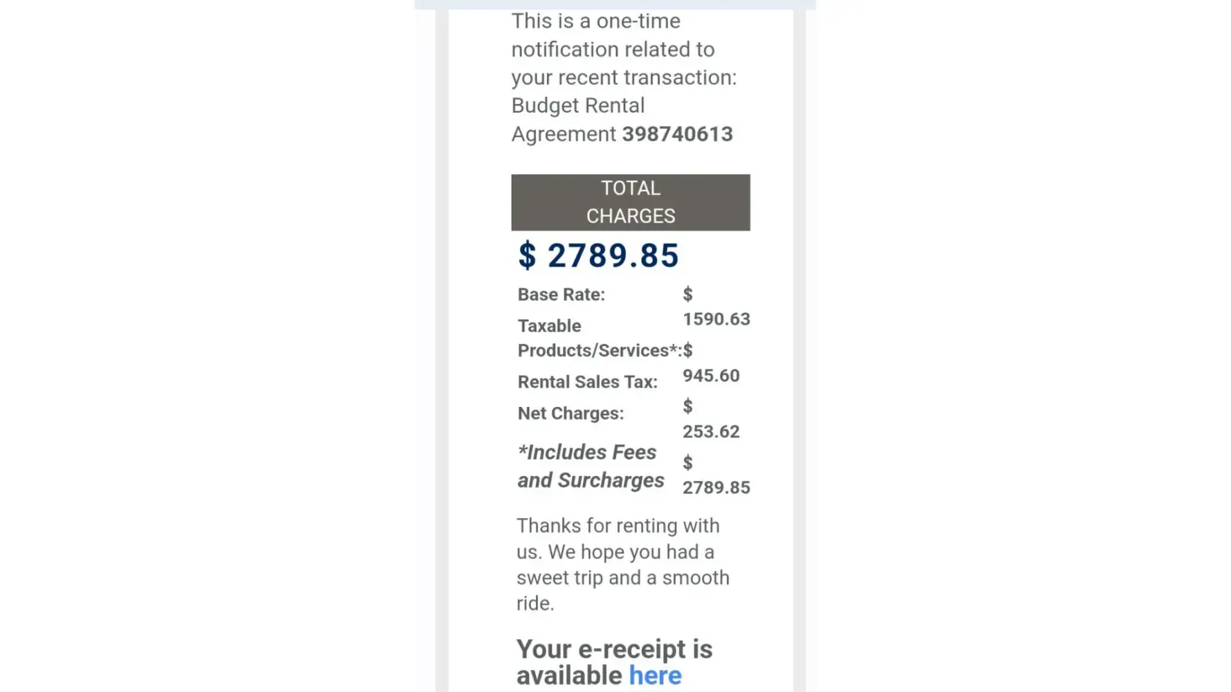 Luckily another company was more flexible and frankly, cheaper, so I cancelled Budget and went with the other company.