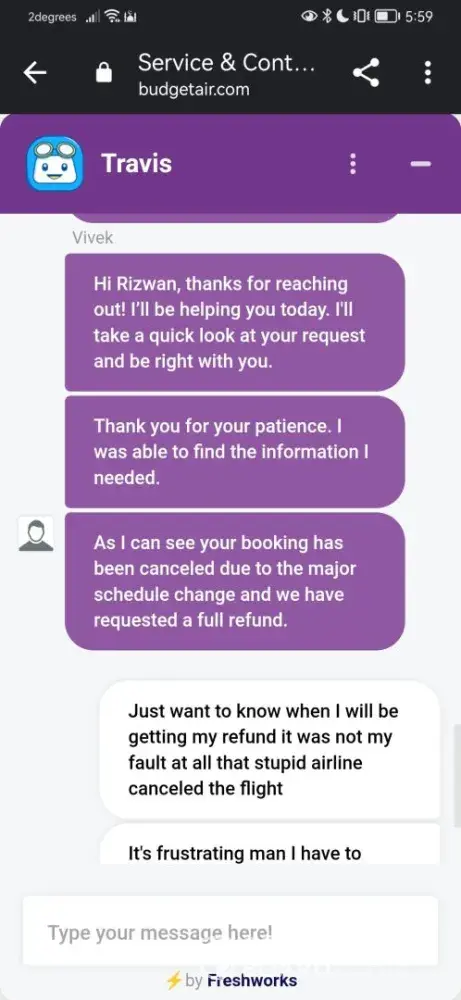 Please see below the conversation between myself and budgetair agent