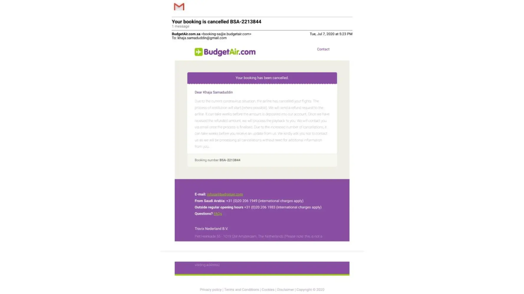 This is very disappointing despite continuous follow up with 14 Reminder since 7th July 2020 (more than 2years and 5months passed away) cancelled booking BSA-2213844 intimation was received from BudgetAir.com but still they did not refund Ticket amount USD 505.40 with unjustified and illegal excuses as COVID-19 impact ended across the globe life return back to normal but not for the customers of BudgetAir.com excuse of Airline taking long time to refund keep lying, false promises and contradict statements.