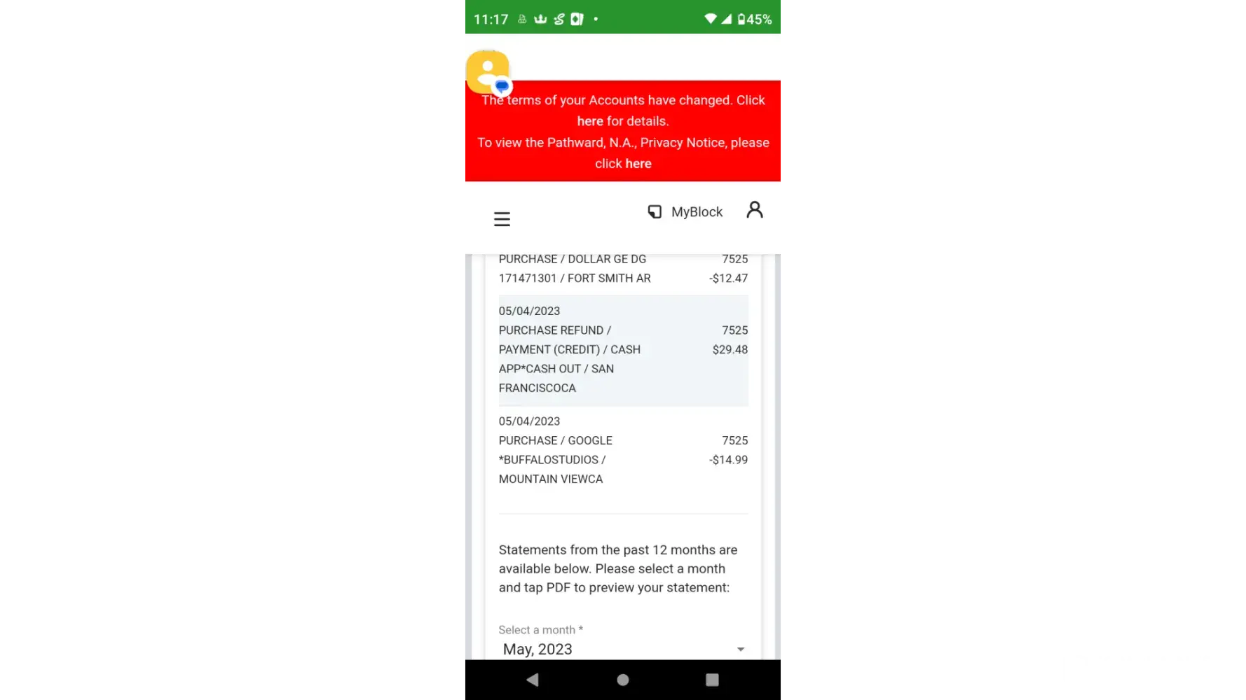 A transaction for $16.04 tried going through my debit/cash app. I didnt make any transactions with Buffalo studios. Fix your system