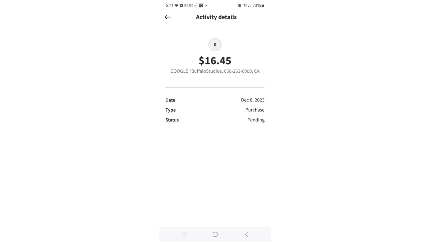 Buffalo studios took 14.99 from my cash app today round 12 or 1 today it is still pending but I need to dispute it but can't and I need my money back on my cash app