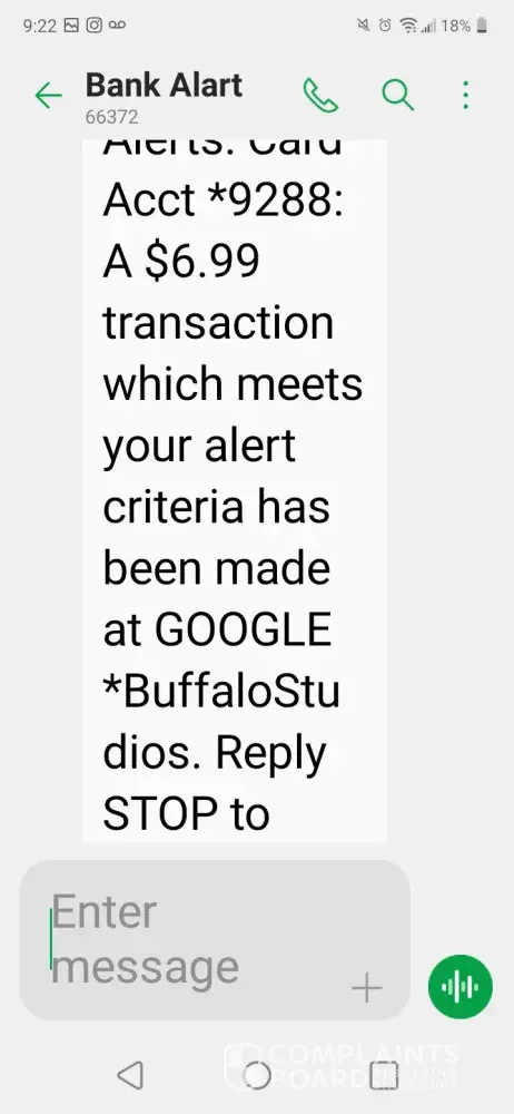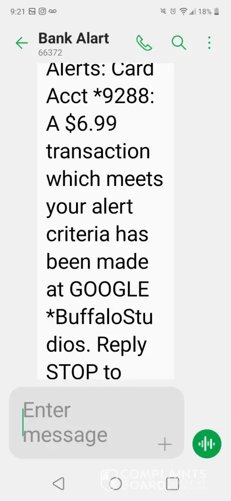 Hello I have received a bill from Buffalo studios for the amount of 34.99 in card ending 2828 first I have no idea what Buffalo studios is I don't know what their products are I never authorized any purchase so I'd like my money back please there is no reason money should of been taken out of my account I really need that money back as it was to get me back and forth to work.