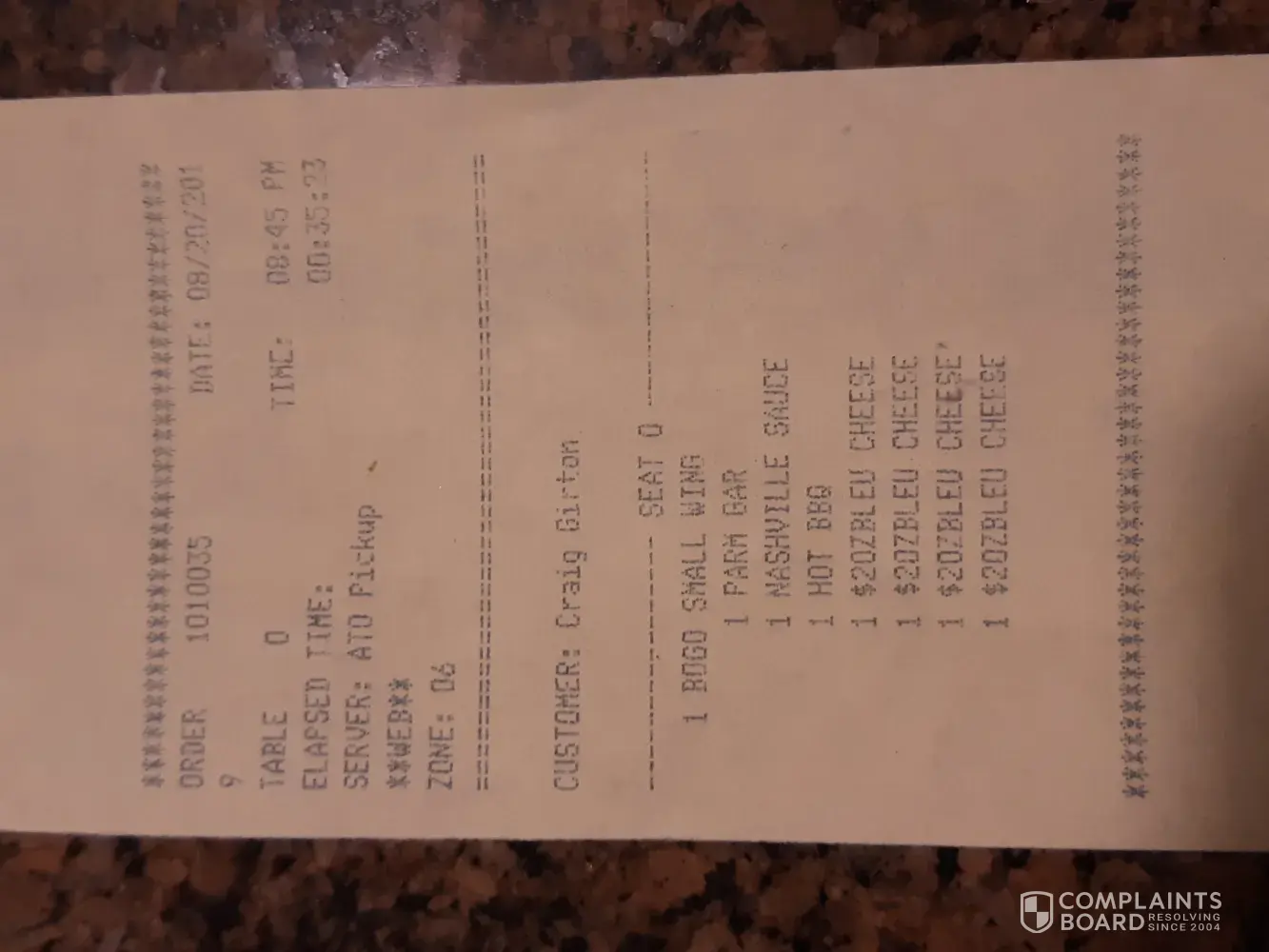 Read full complaintbuffalo wings & french fry basket