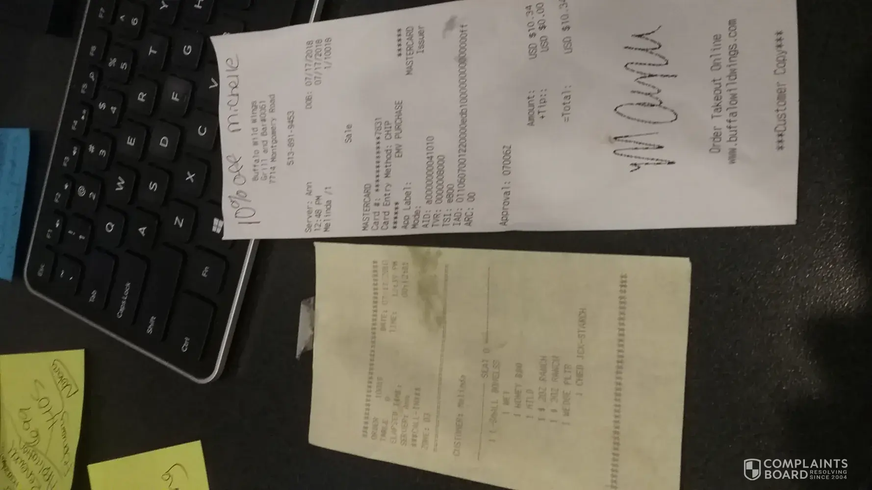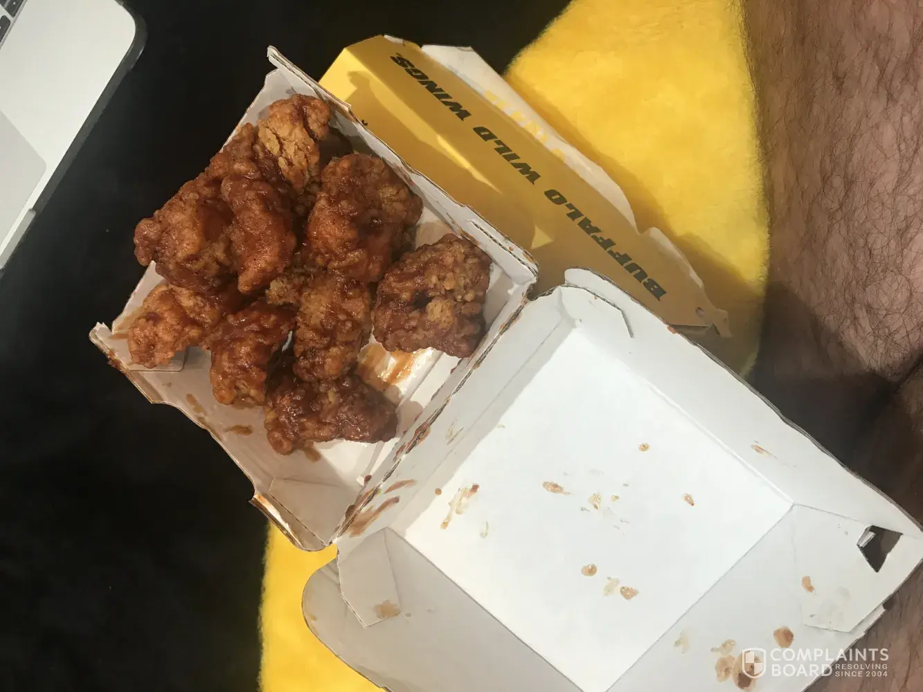 Provided feedback via buffalo wild wings website as such the manager responded with the customer should have complained to the manager during their visit.